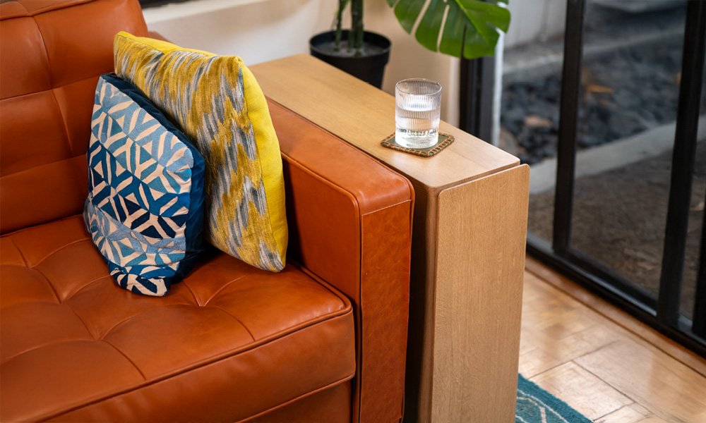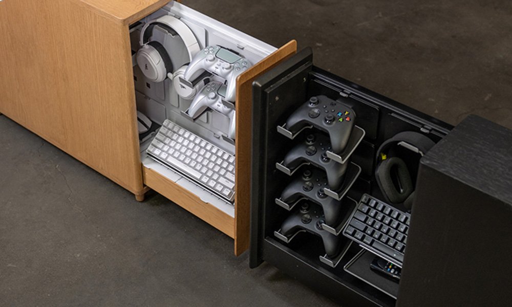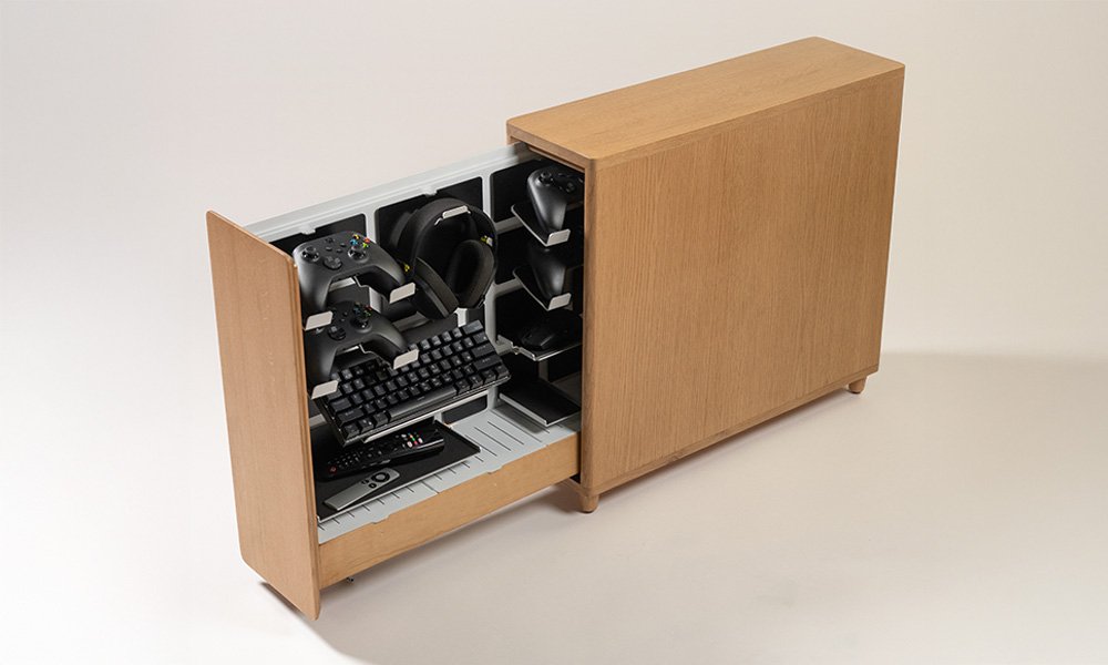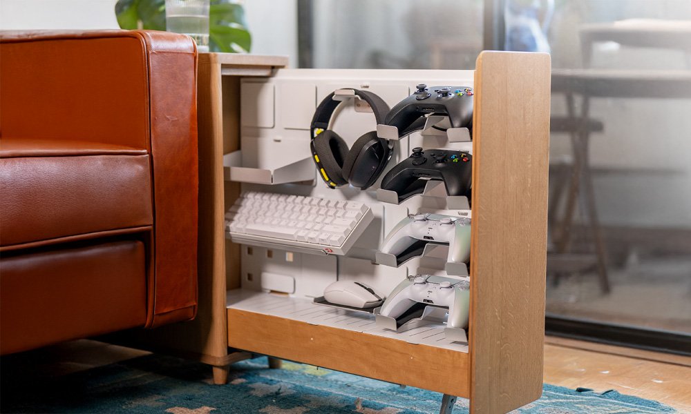 The 340 End Table is a stylish modular storage solution that organizes and charges your tech peripherals while enhancing your living space.