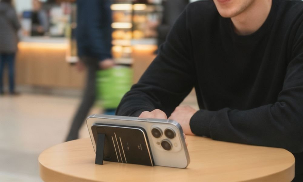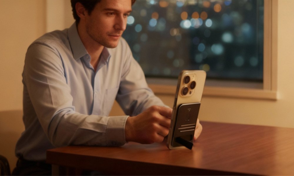 - Sleek and Portable Design: Weighing just 60 grams and measuring 86 mm × 54 mm × 5 mm, AIGSM is easy to carry and can be used as a phone stand for video meetings.