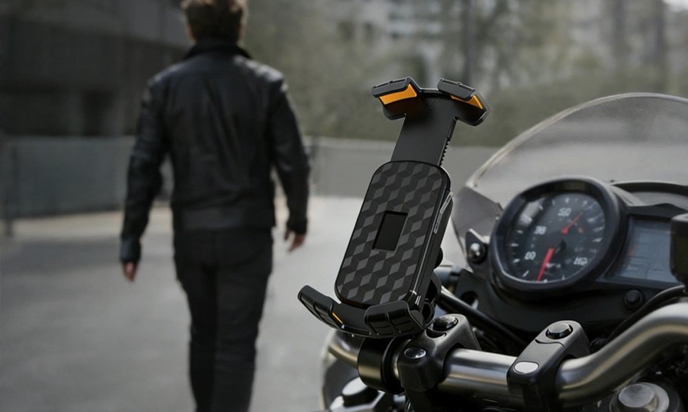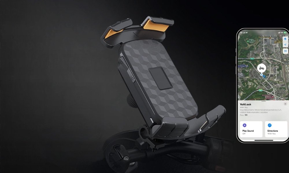 VoltLock: a 3-in-1 motorcycle mount offering zero-vibration, fast charging, and Apple/Google Find My tracking.